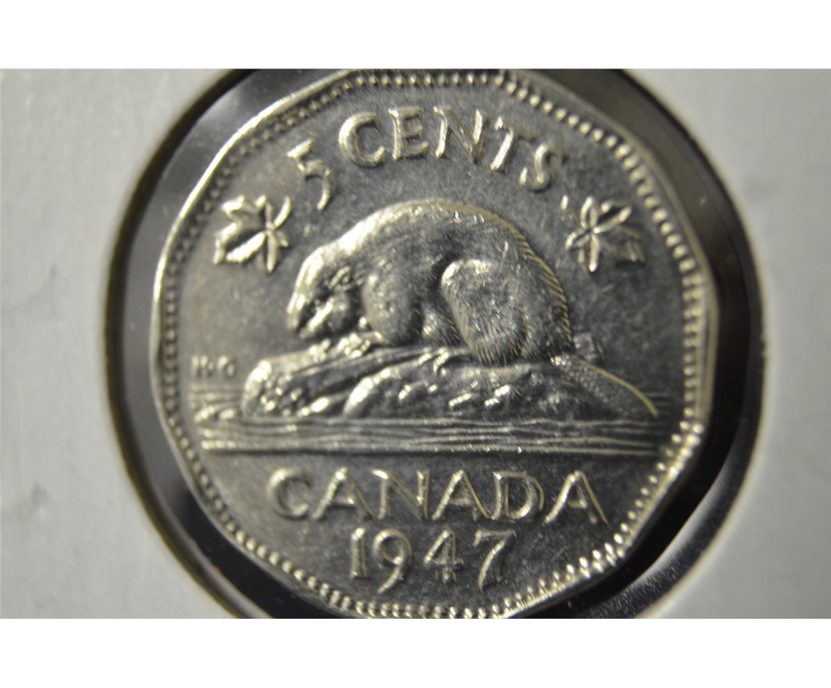 1947 Canada 5-Cent Nickel - HIGH GRADE BU+++