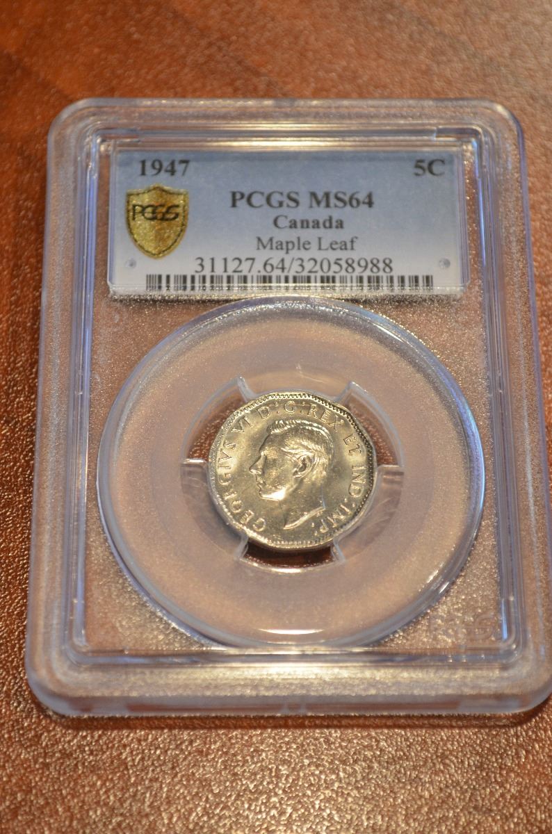 1947 Canada Maple Leaf Nickel - PCGS MS64