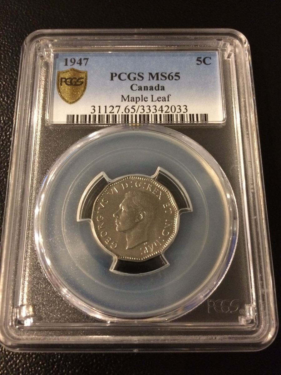 1947 Canada Maple Leaf Nickel - PCGS MS65