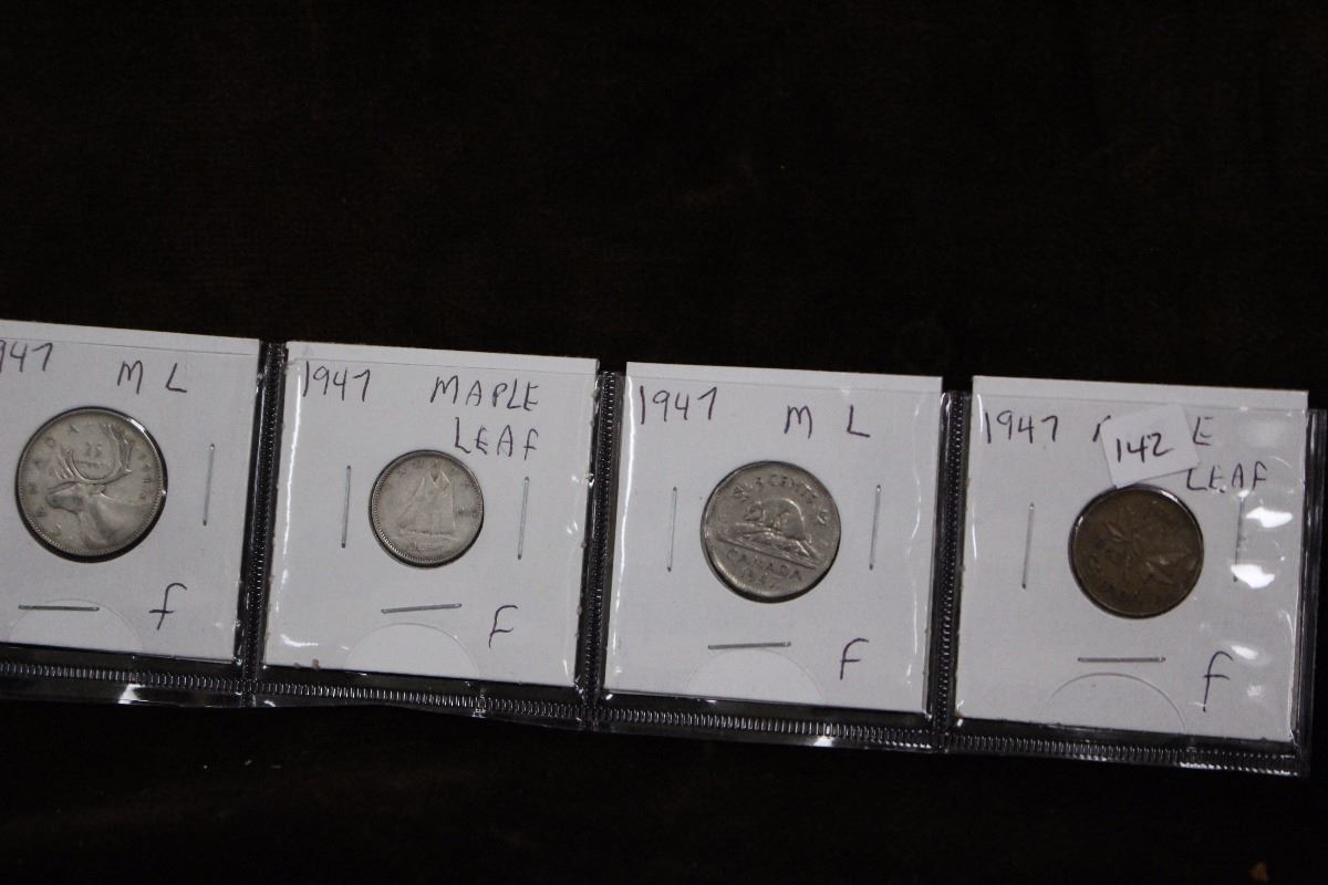 1947 Canada Maple Leaf One Cent; Five Cent; Ten Cent & Twenty Five Cent Coins