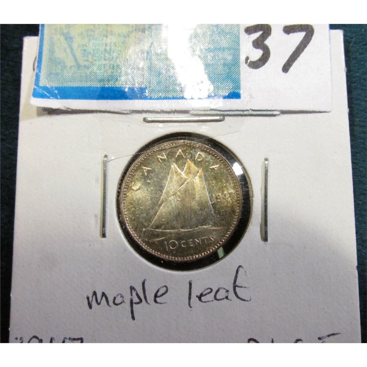 1947 Canada Maple Leaf Variety, Silver Dime. GEM BU 65.