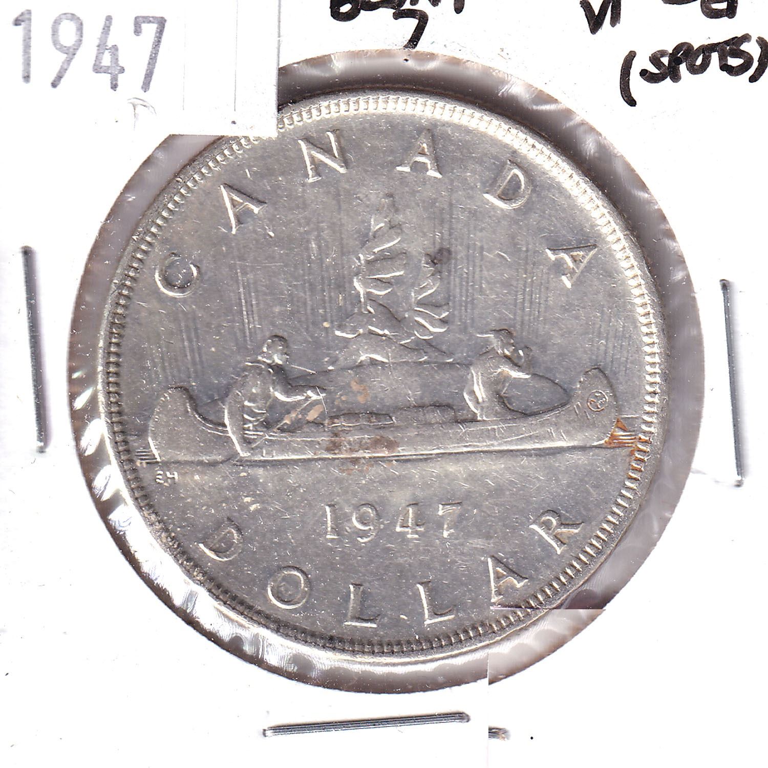1947 Canada Silver $1 Blunt 7 VF-EF (Spots).