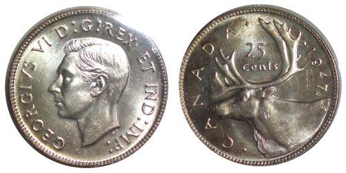0275 - 1947 Canada Twenty-Five Cents-ICCS MS63