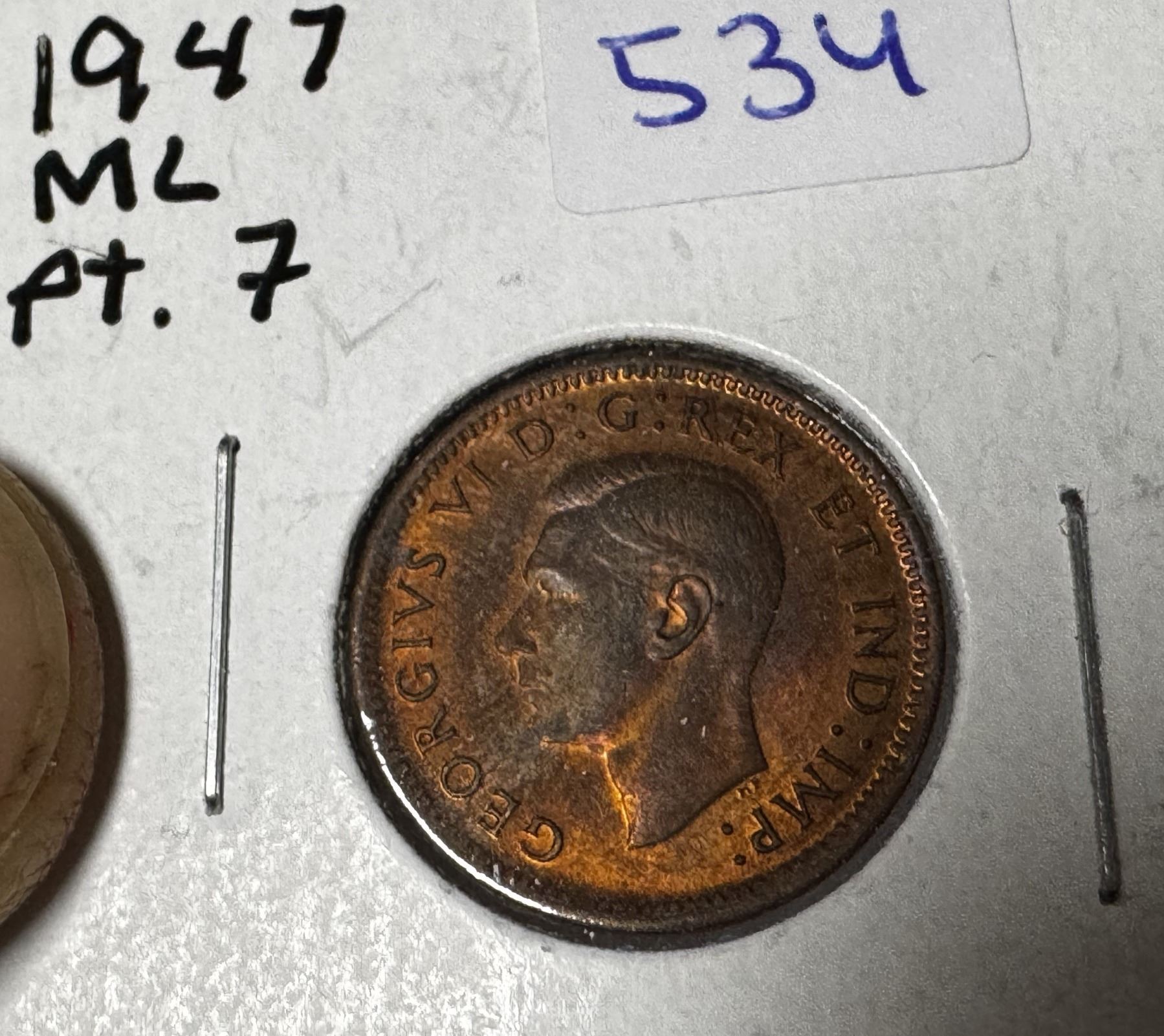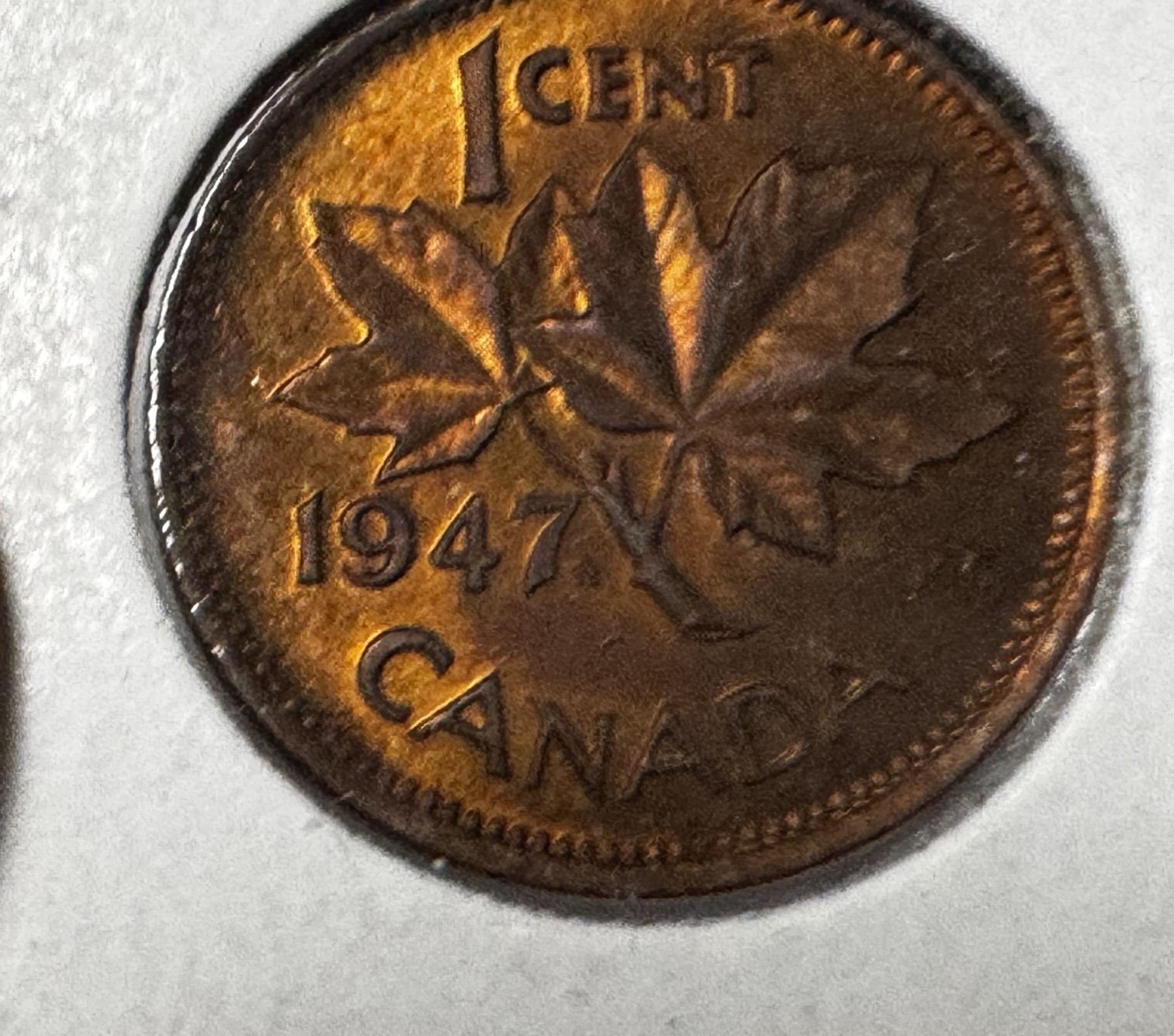 1947 Canadian One Cent - ML, Pointed 7.