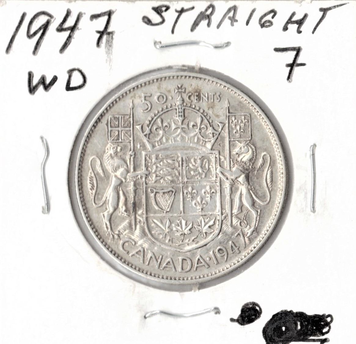 1947 Canadian Silver Fifty Cent - Straight 7 WD