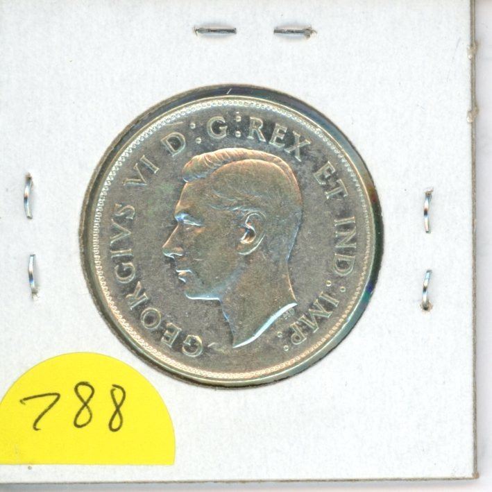 1947 Curved Right 7 4/4 Canadian Silver 50 Cents. 4 Over 4 variety. Scarce. VF-20.