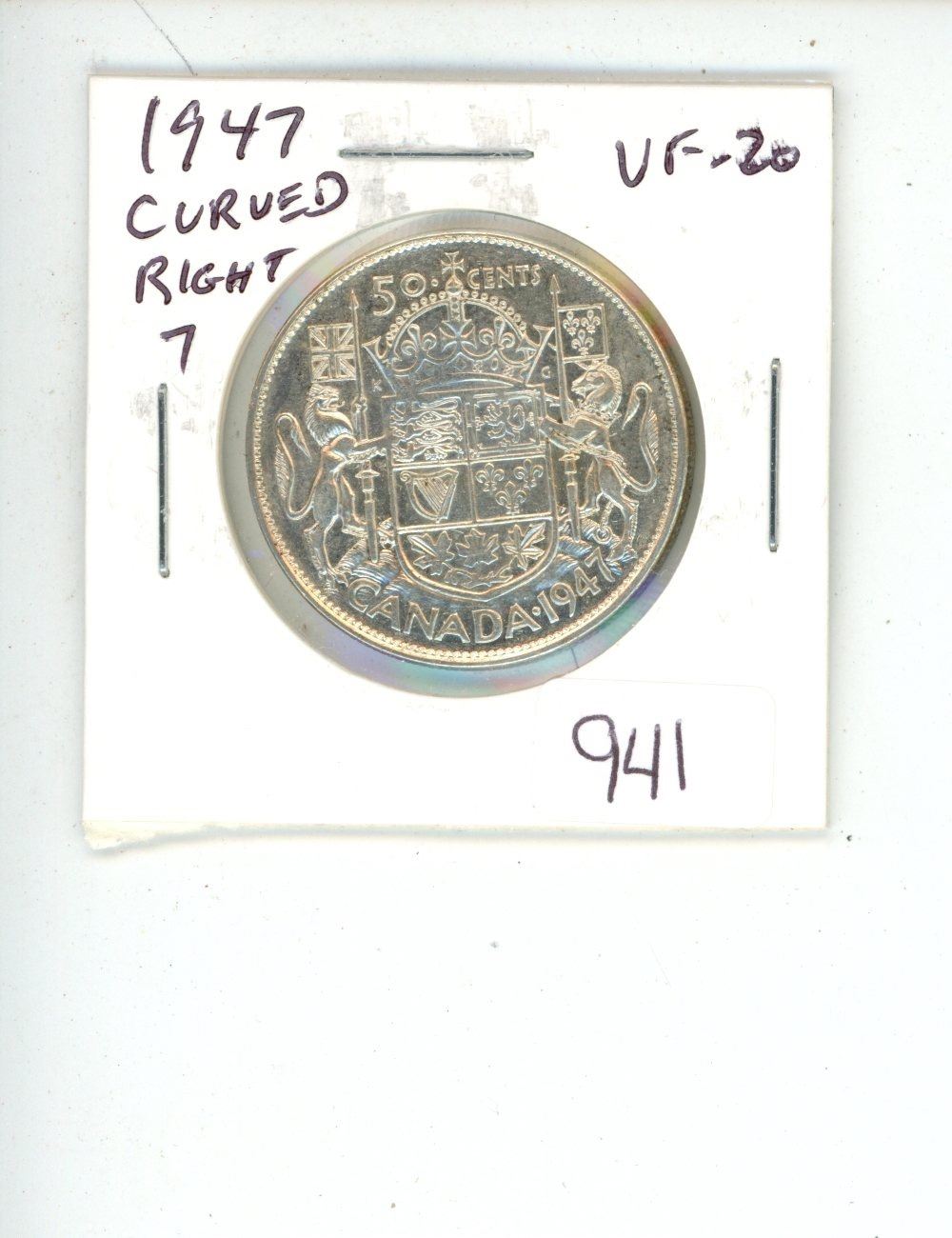 1947 Curved Right 7 George VI Silver 50 Cents. VF-20.