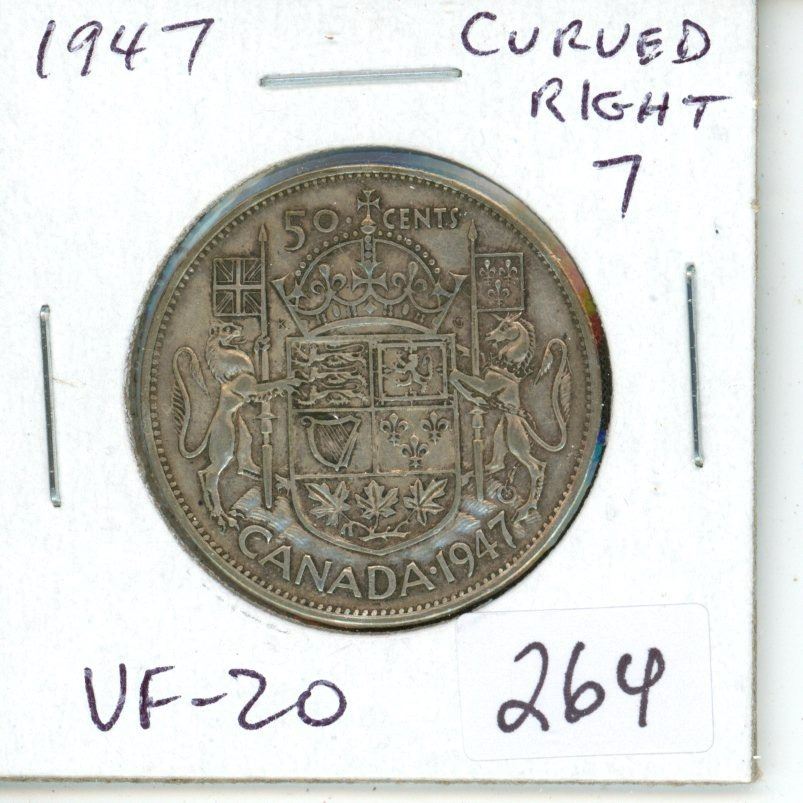 1947 Curved Right 7 Silver 50 Cents. VF-20.