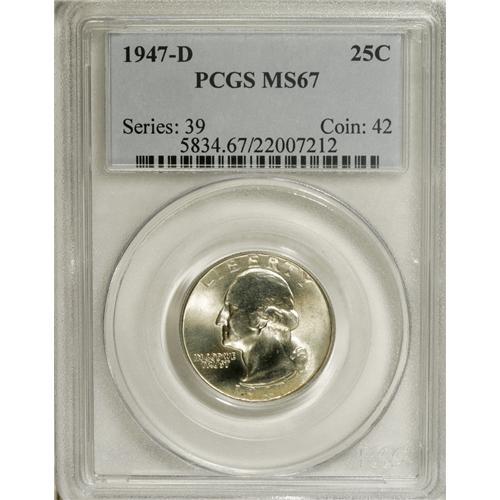 1947-D 25C MS67 PCGS. PCGS Population (102/0). NGC