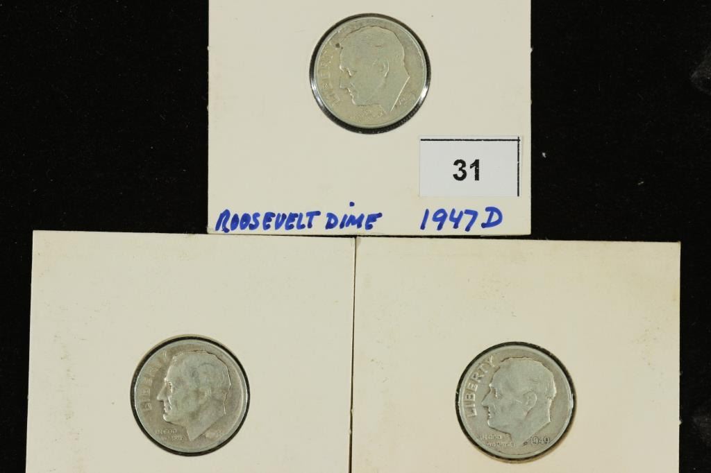 1947-D,48-D & 49-D SILVER ROOSEVELT DIMES