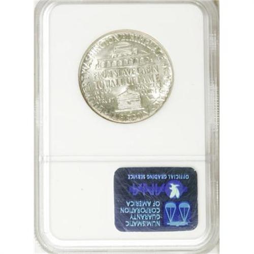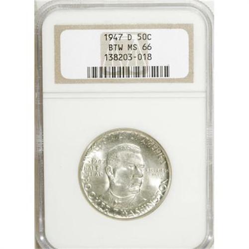 <B>1947-D 50C Booker T. Washington MS66 NGC.</B></I> NGC Census: (87/2). PCGS Population (76/0). Mintage: 100,000. Numismedia Wsl. Price for NGC/PCGS coin in MS66: $550. (#9409)<BR><BR><b>Shipping:</b> Coins & Currency (<a target="_blank" href="http://www.heritageauctions.com/common/shipping.php">view shipping information</a>)