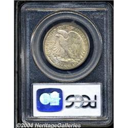 <B>1947-D<50C> MS66 PCGS.</B></I> Creamy aquamarine and dove-gray colors embrace both sides. Cartwheel luster readily penetrates this originally toned premium Gem. A sharply struck and carefully preserved representative of this final year Denver Mint issue. <BR><BR><B>Important notice:</B> Heritage usually auctions material at the rate of 200-250 lots per hour. On some occasions eBay Live bid software or the Internet may not be able to keep up with the pace of the auction. We recommend placing a realistic absentee bid now as insurance to avoid disappointment. Occasionally the auctioneer may eliminate or reject an eBay Live bid, and the auctioneer may also reopen a lot after the close of the eBay live bidding (usually because we missed an audience bid), and may reject your bid even if it shows you as the winning bidder. By bidding via eBay Live, you agree that Heritage may award the lot to another bidder at its sole discretion under the circumstances described above or any other reasonable circumstances. Since eBay bids are not shown to us until we open the lot on the floor, we treat those bids just like floor bids. In most cases the floor responds before the eBay bid is presented to us, due to Internet lag time, so for consistency we have made it a policy that floor bids are always considered first over tie eBay live bids. Also please note that all Heritage lots purchased through eBay Live carry a 20% Buyer's Premium. Please make sure you read the Terms and Conditions before you bid.