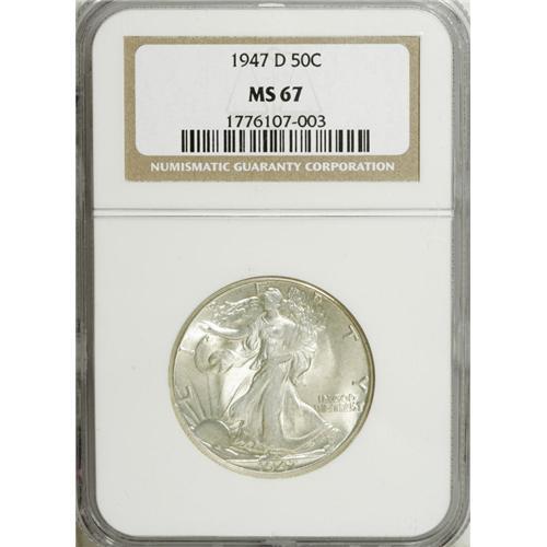 1947-D 50C MS67 NGC. This is an essentially untoned Su