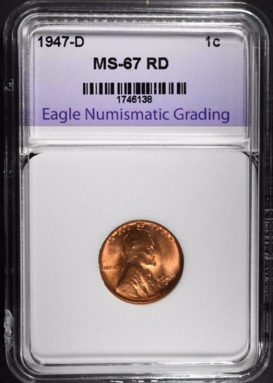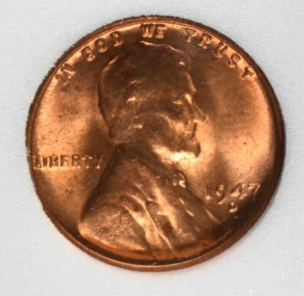 1947-D LINCOLN CENT ENG SUPERB GEM BU RD Top Rated Auction House ESTIMATE $125 - $150.