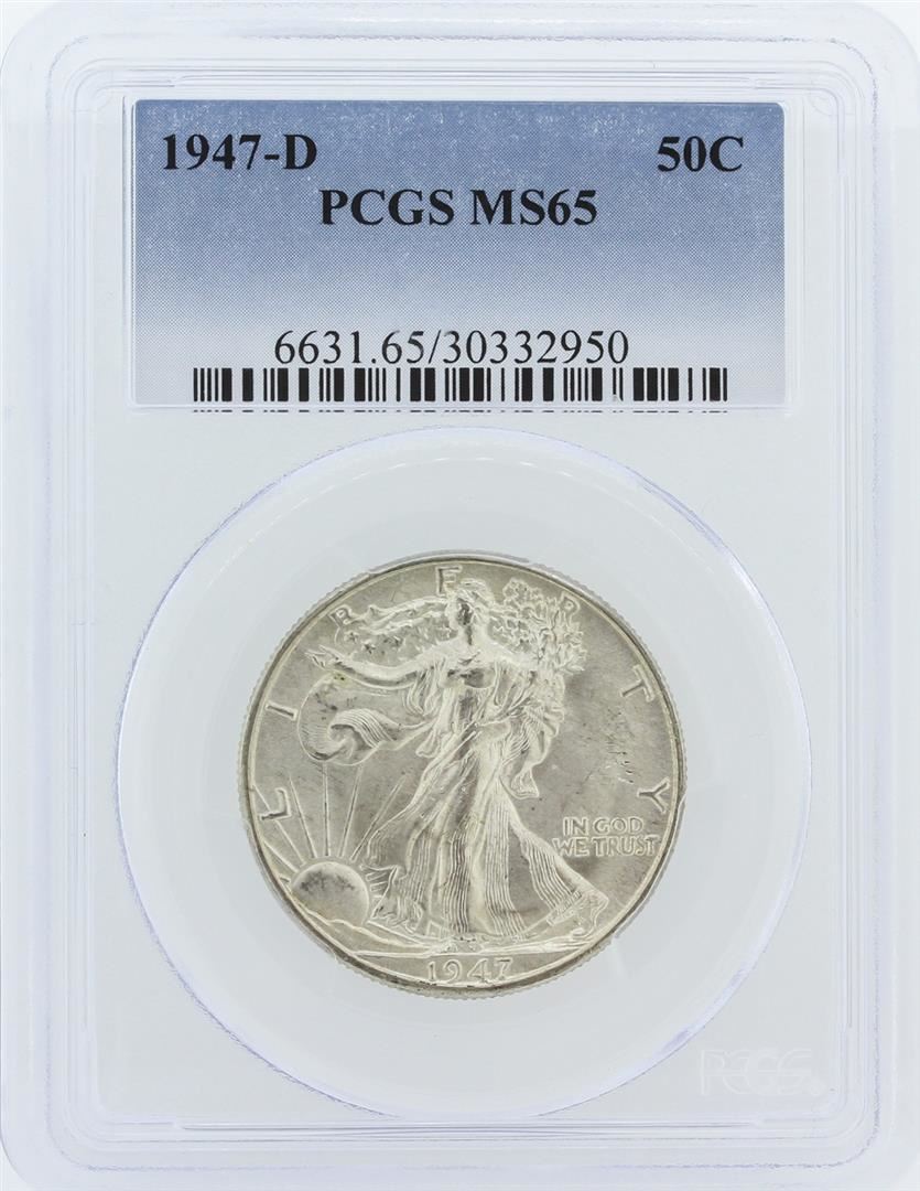 One 1947-D PCGS MS65 Liberty Walking Half Dollar. PCGS Certified.