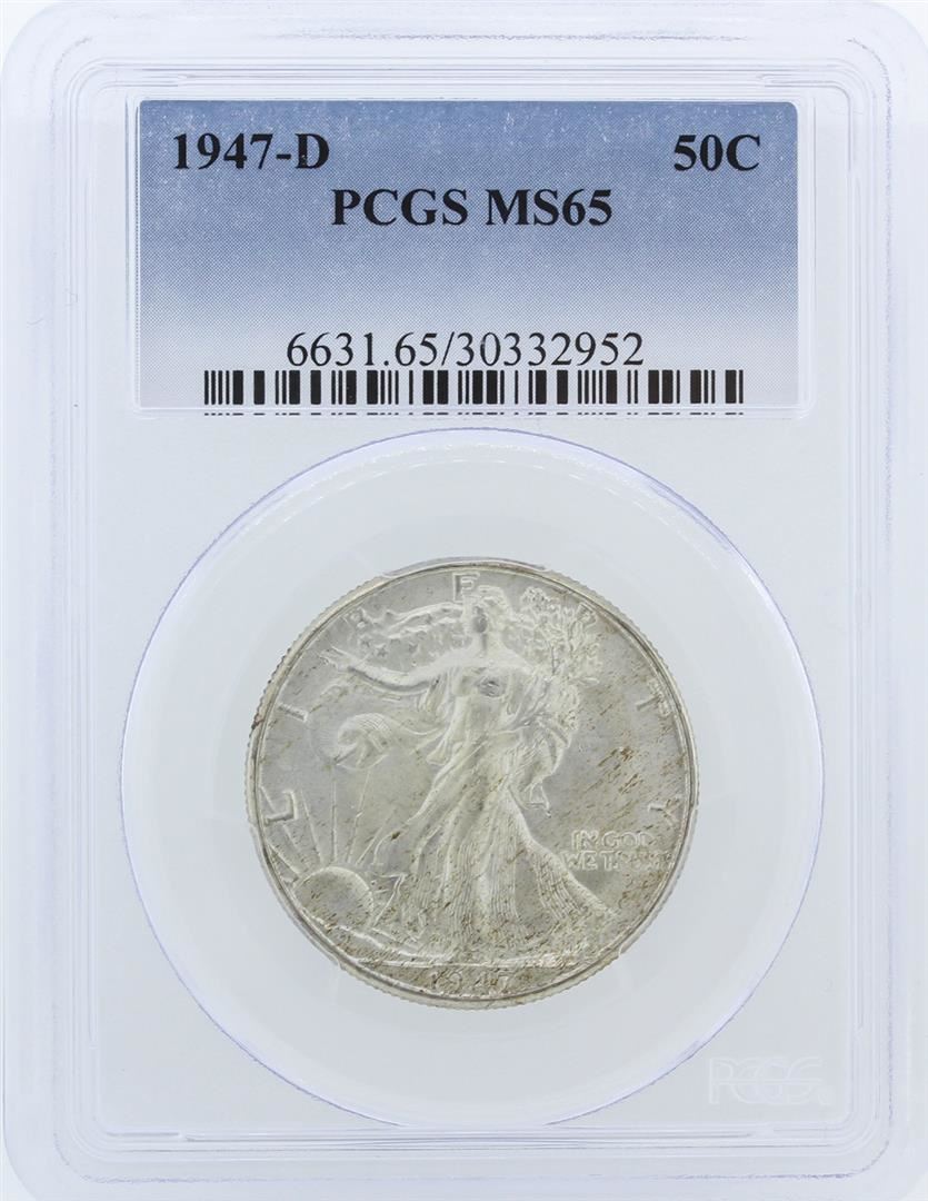 One 1947-D PCGS MS65 Liberty Walking Half Dollar. PCGS Certified.