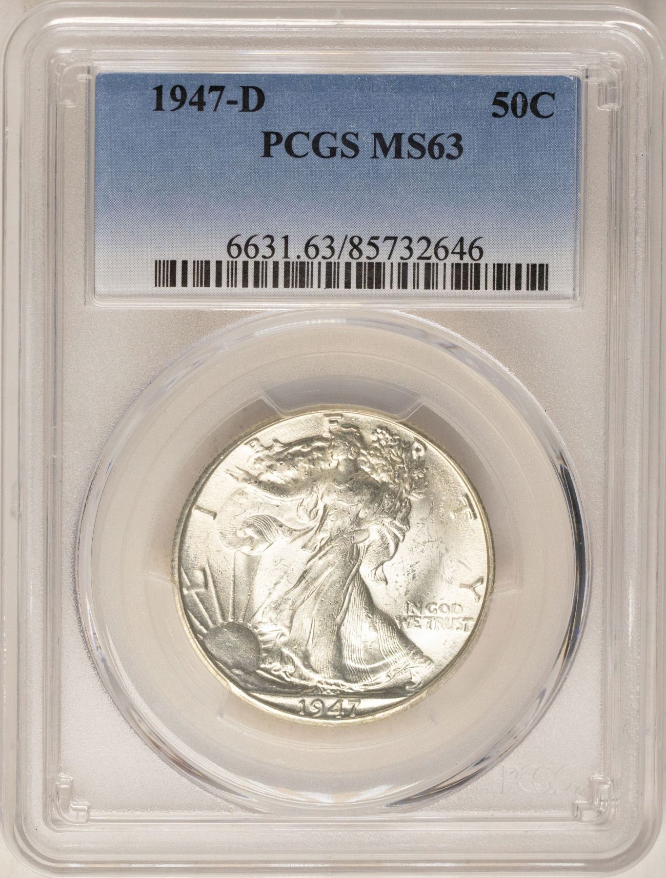 One 1947-D Walking Liberty Half Dollar Coin PCGS MS63.