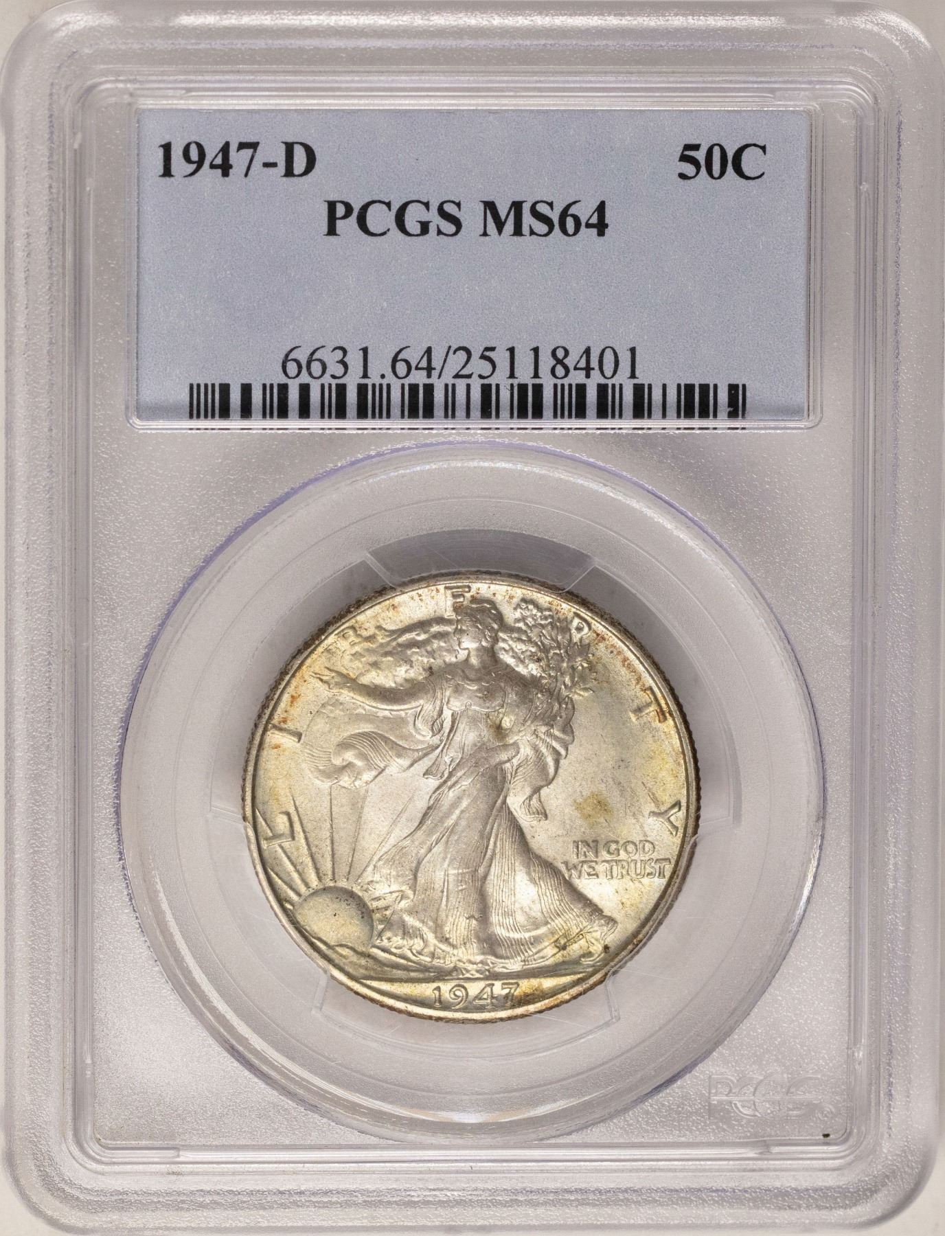 One 1947-D Walking Liberty Half Dollar Coin PCGS MS64.