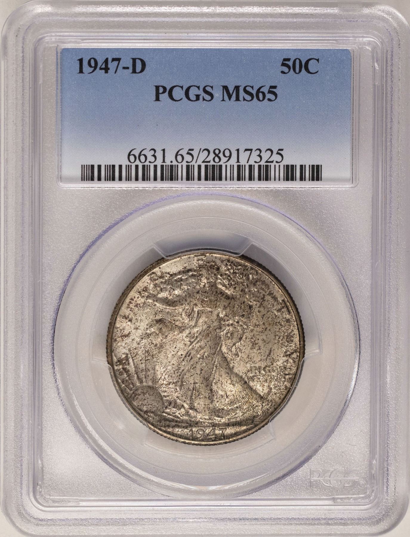 One 1947-D Walking Liberty Half Dollar Coin PCGS MS65.