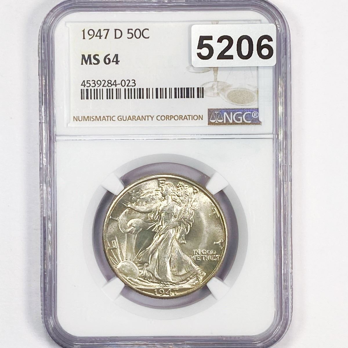 1947-D Walking Liberty Half Dollar NGC - MS64