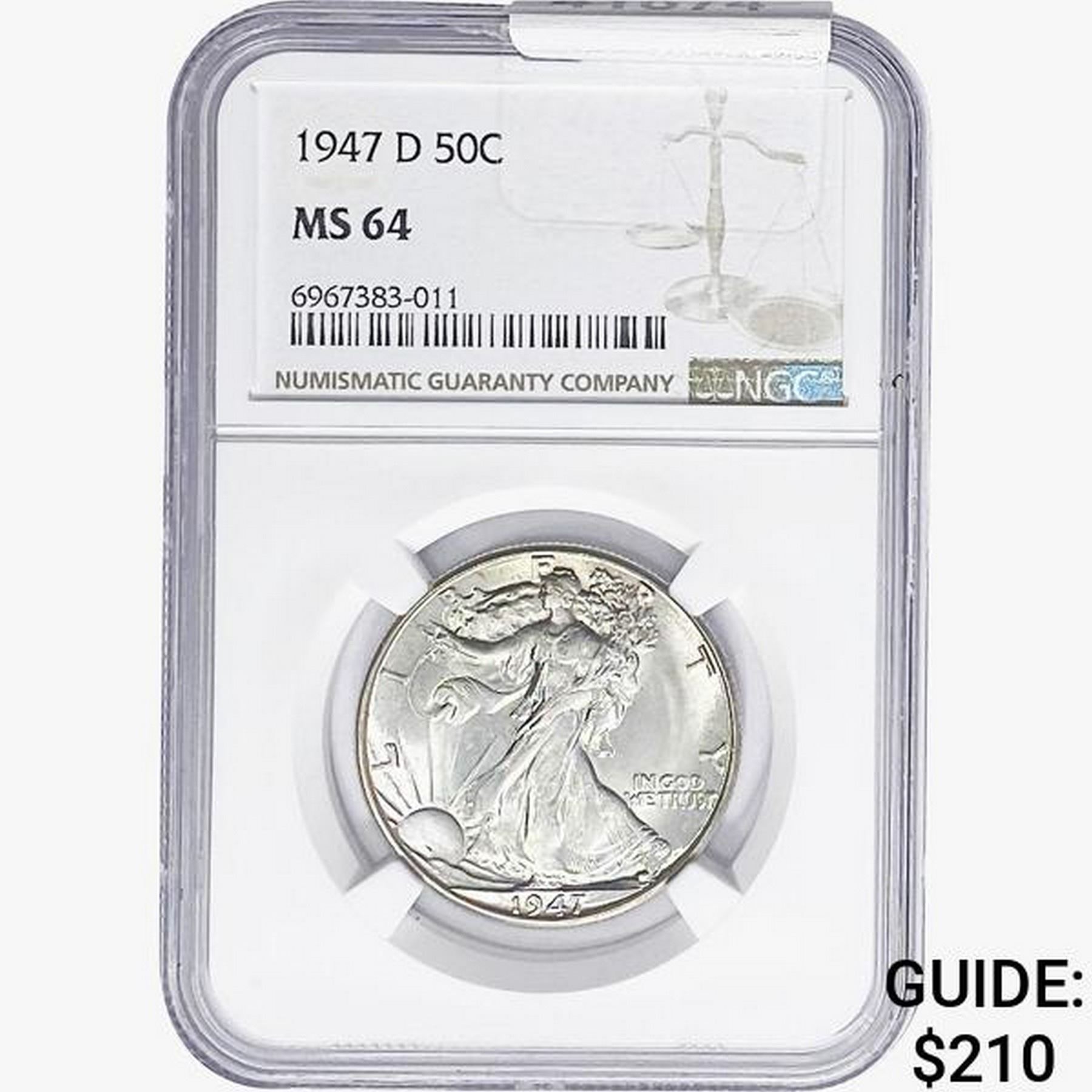 1947-D Walking Liberty Half Dollar NGC MS64