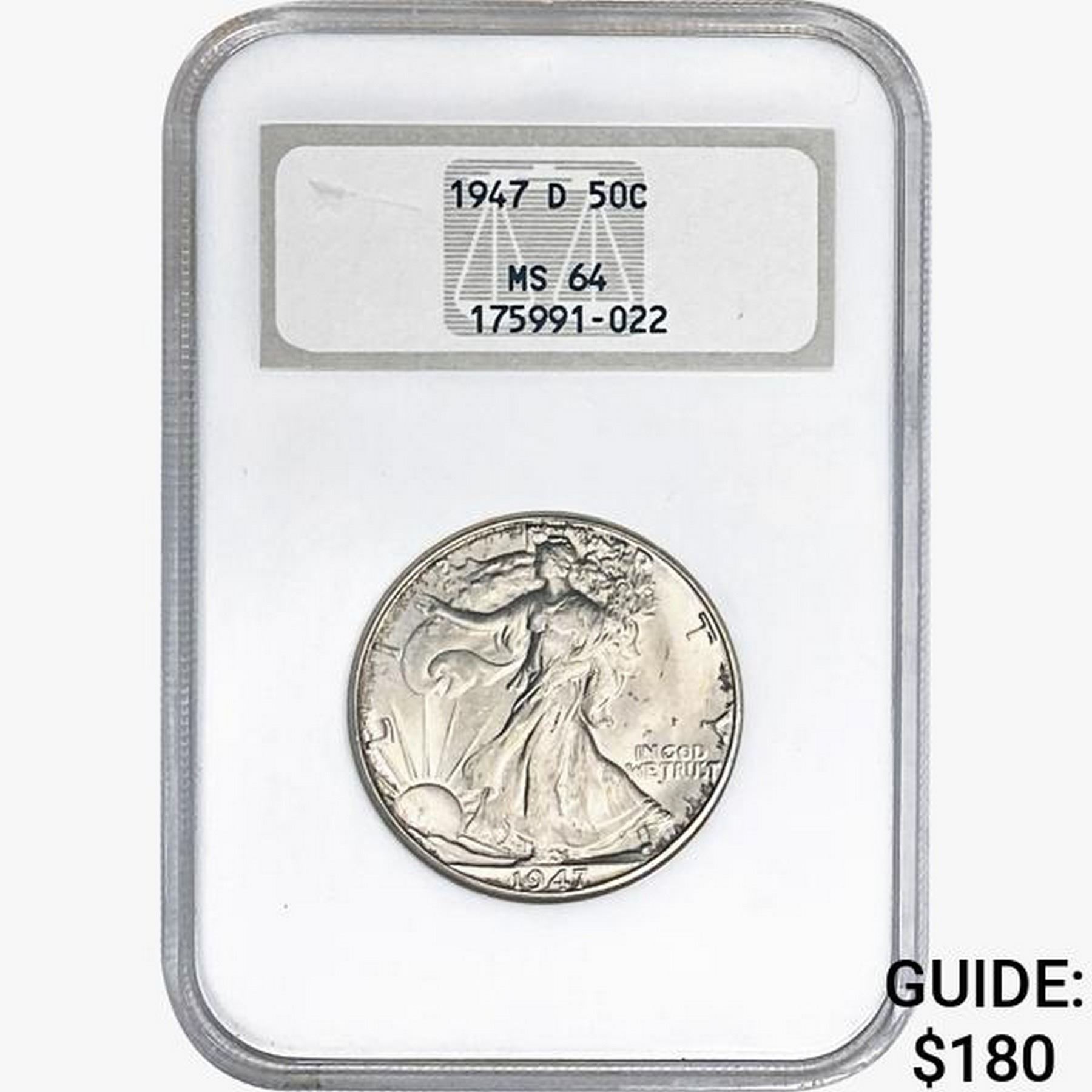 1947-D Walking Liberty Half Dollar NGC MS64