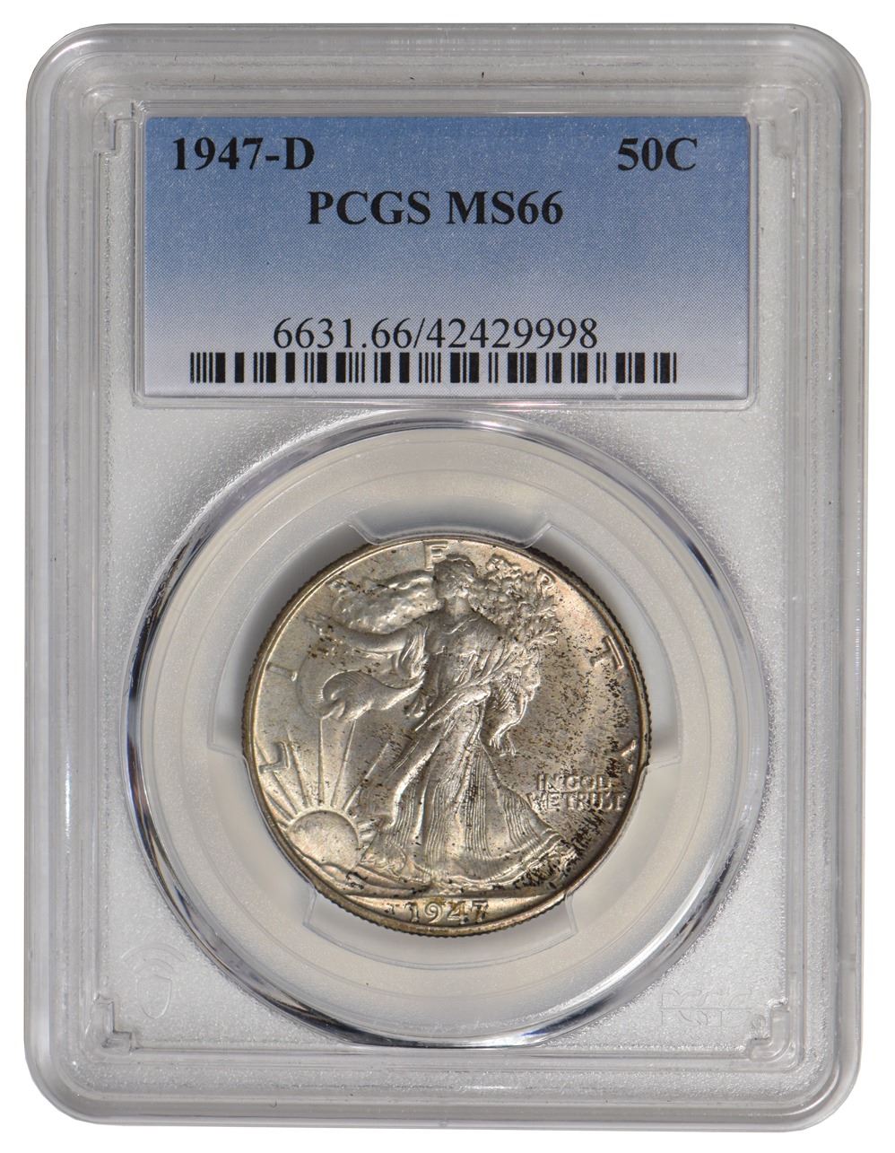One 1947-D Walking Liberty Half Dollar PCGS MS66.