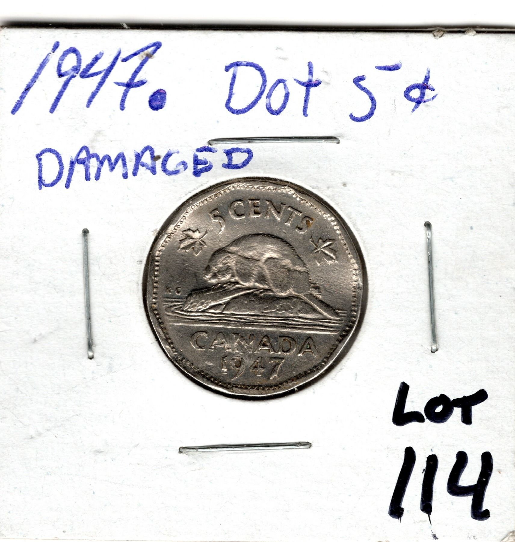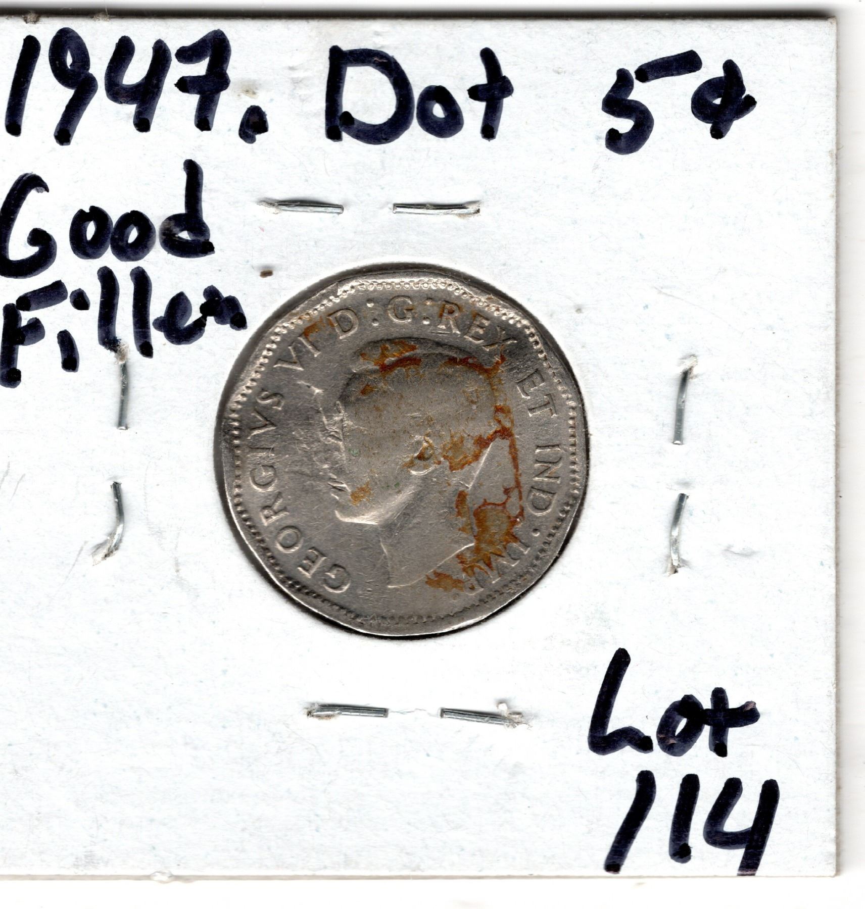 1947 DOT 5 CENT, GOOD HOLE FILLER