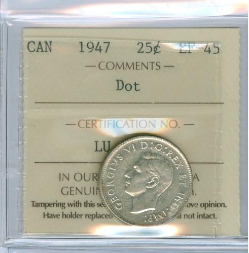 1947 Dot 25¢ ICCS EF45, brilliant and lustrous.
