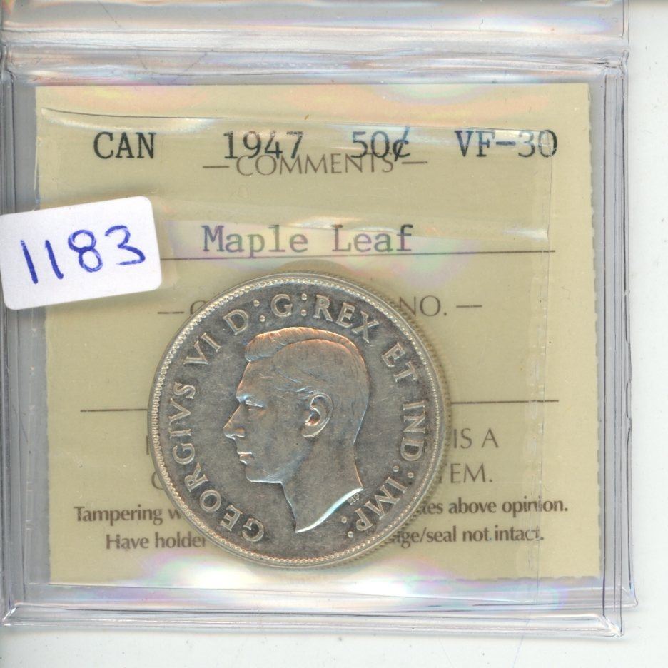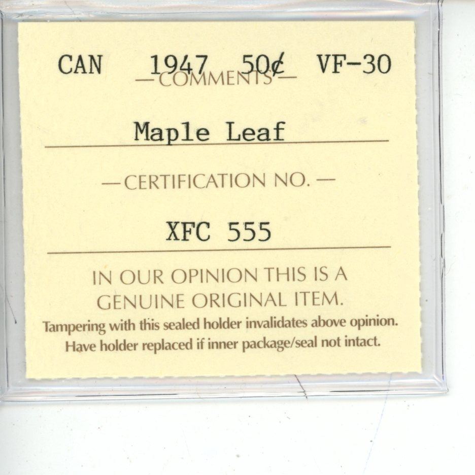 1947 ICCS Graded - Canadian Fifty Cent - ML - VF30