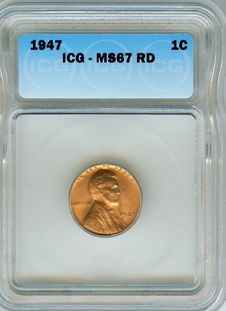 1947 LINCOLN WHEAT CENT ICG MS67 RED