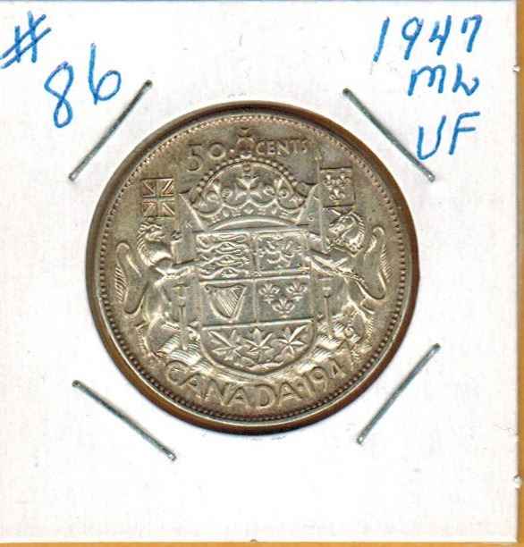 1947 MAPLE LEAF CANADIAN 50 CENT COIN