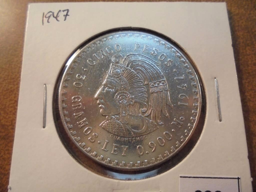 1947 MEXICO SILVER 5 PESO .8680 OZ. ASW UNC