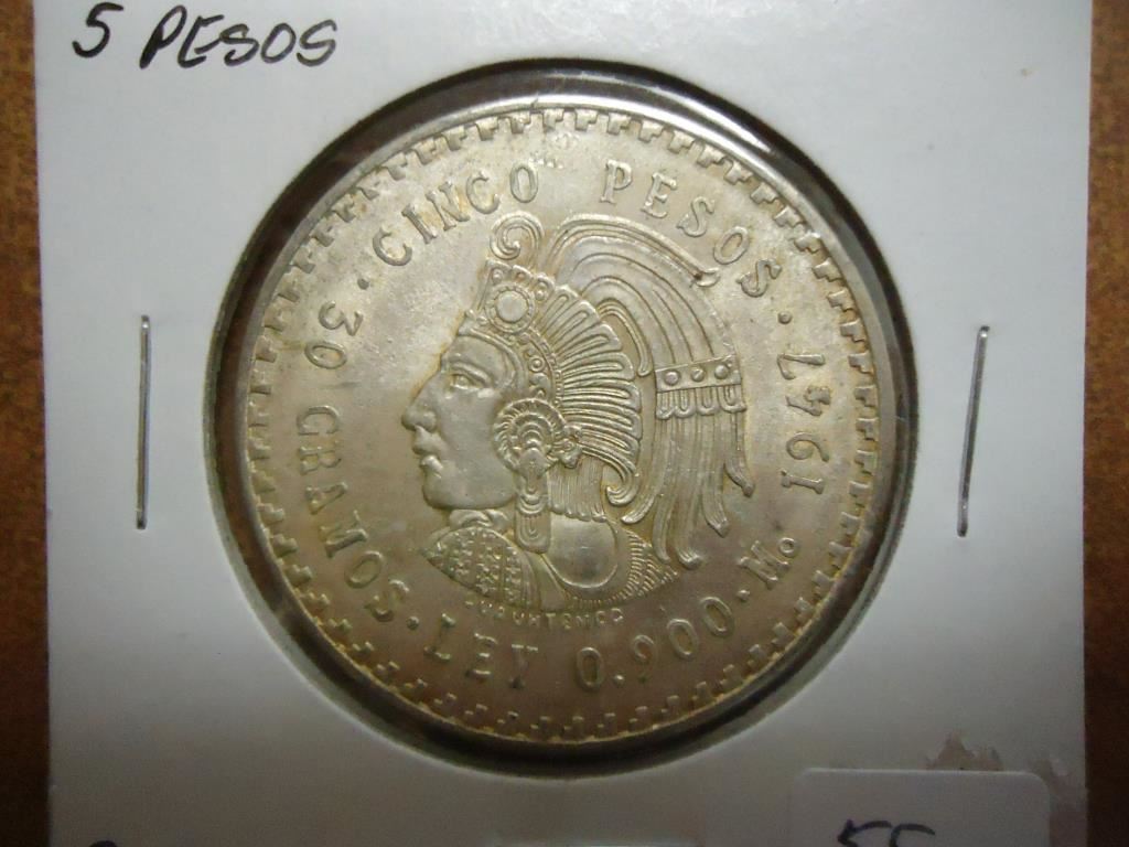 1947 MEXICO SILVER 5 PESO .8680 OZ. ASW