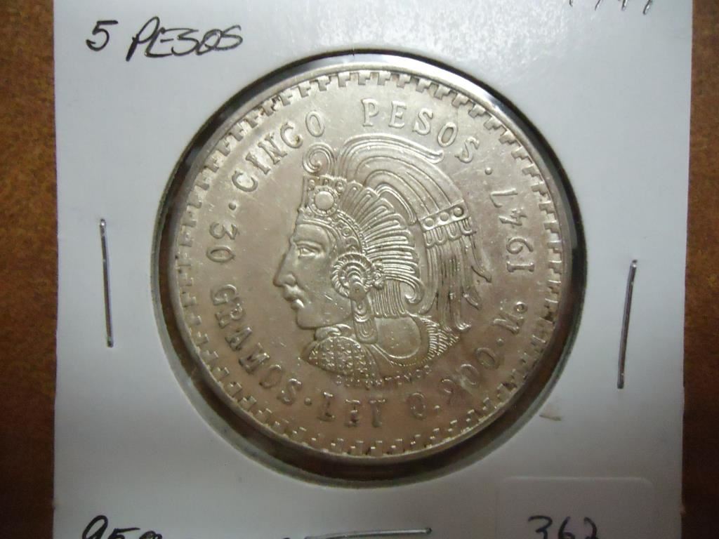 1947 MEXICO SILVER 5 PESOS .8680 OZ. ASW