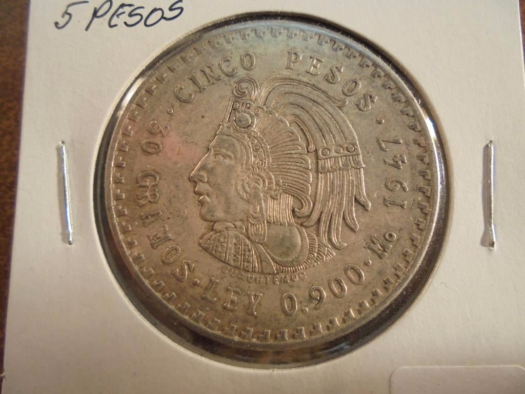 1947 MEXICO SILVER 5 PESOS .8680 OZ. ASW