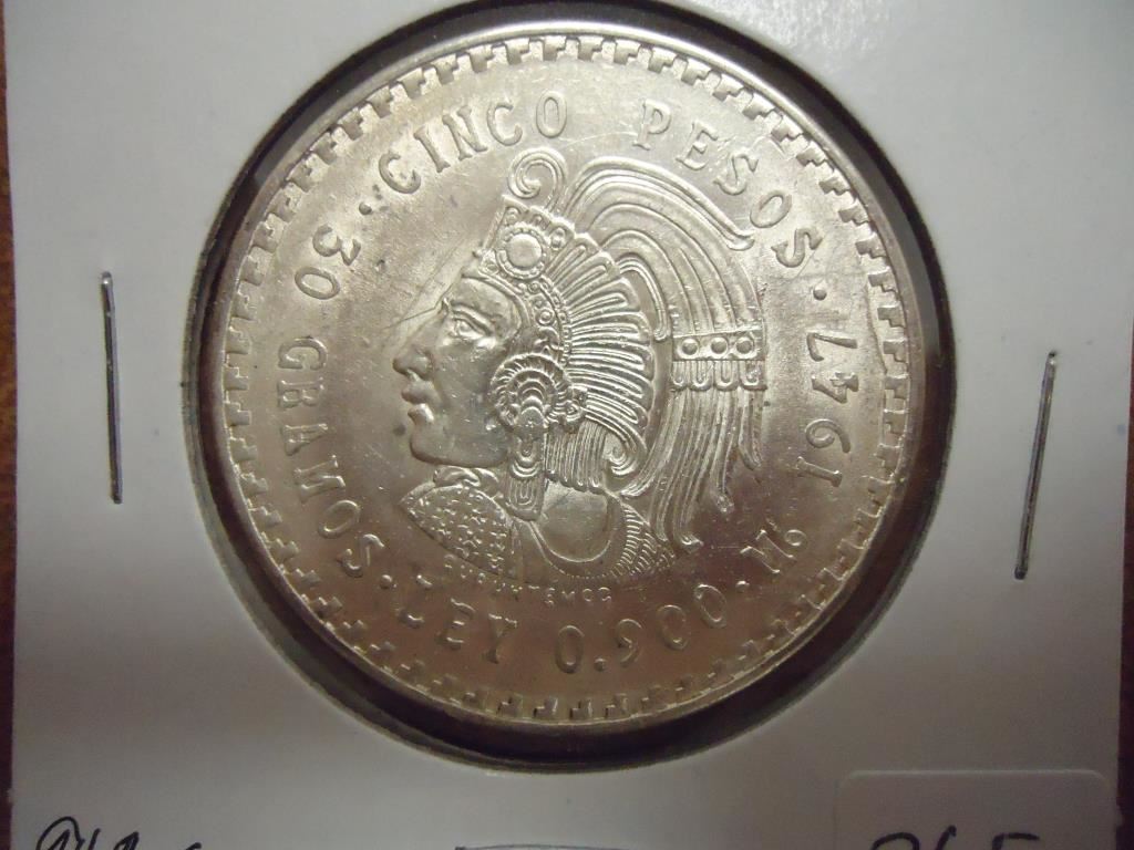1947 MEXICO SILVER 5 PESOS UNC .8680 OZ. ASW