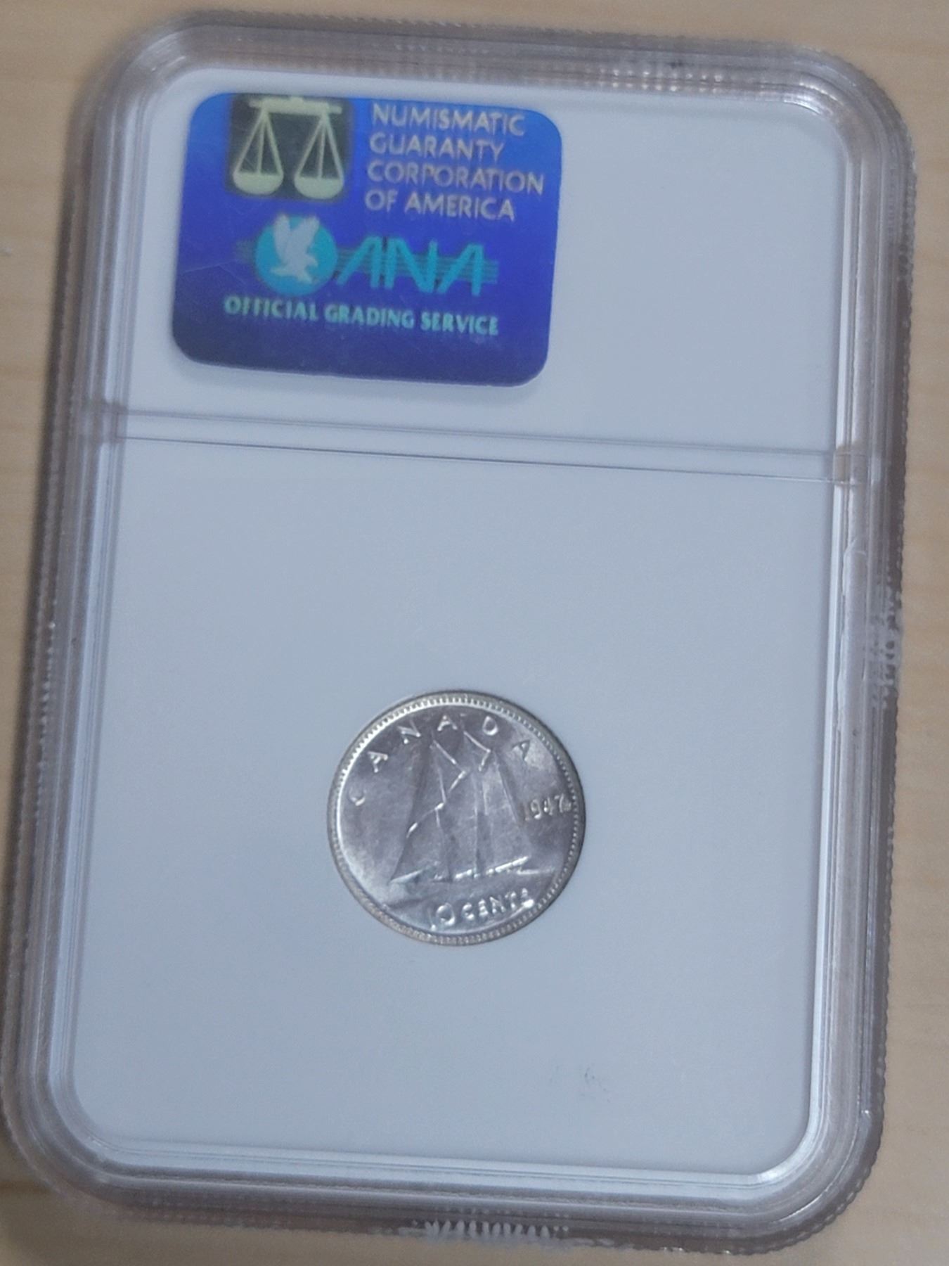 1947 ML Canada Silver 10¢; AU 58 (NGC # 150125-021)