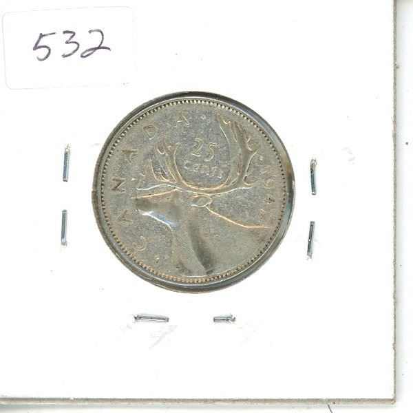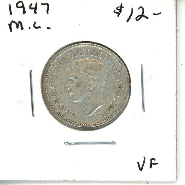 1947 ML Canadian Silver Twenty Five Cent Coin