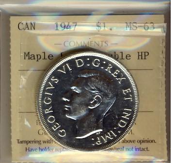1947 ML Double HP $1 ICCS MS63, fully brilliant and lustrous