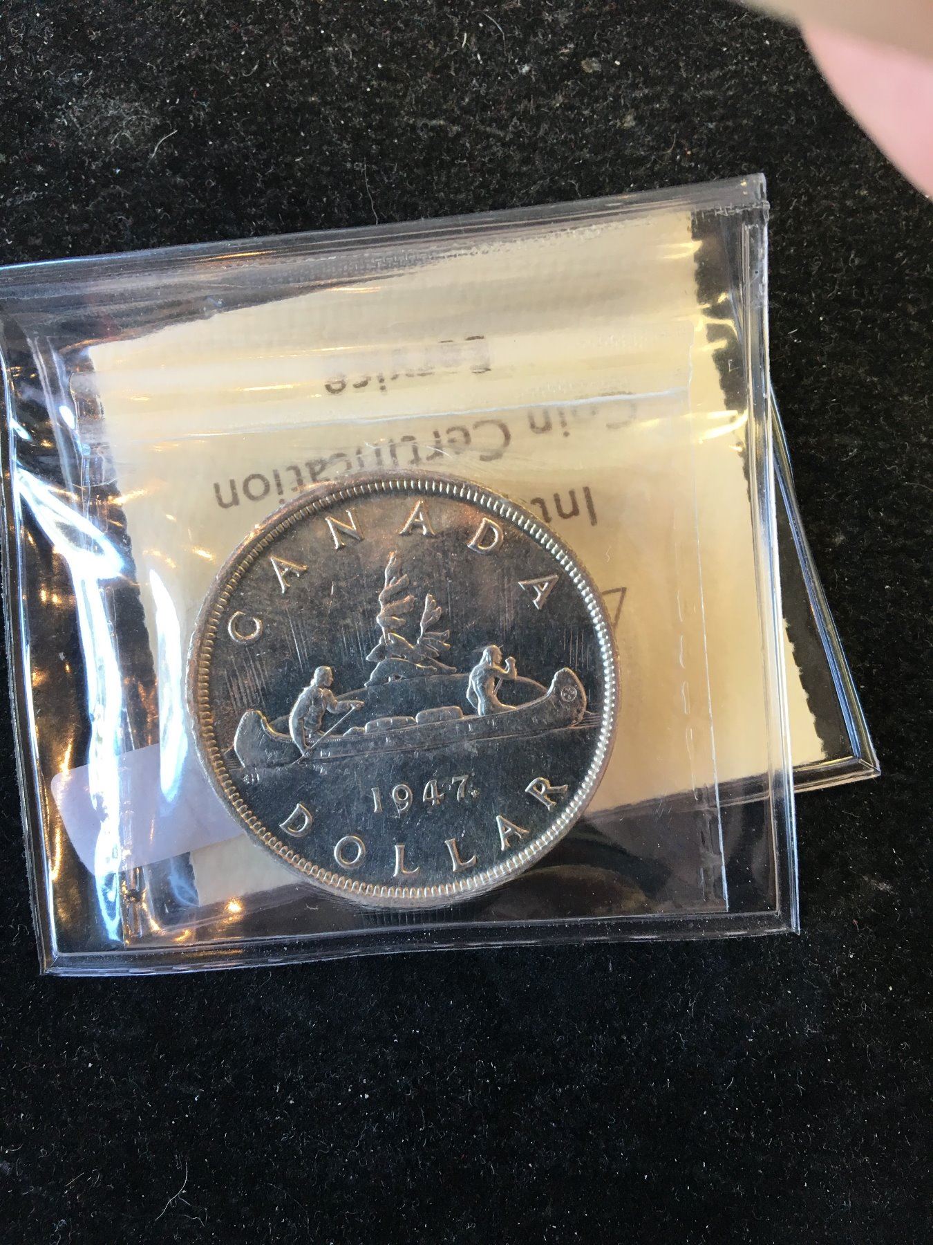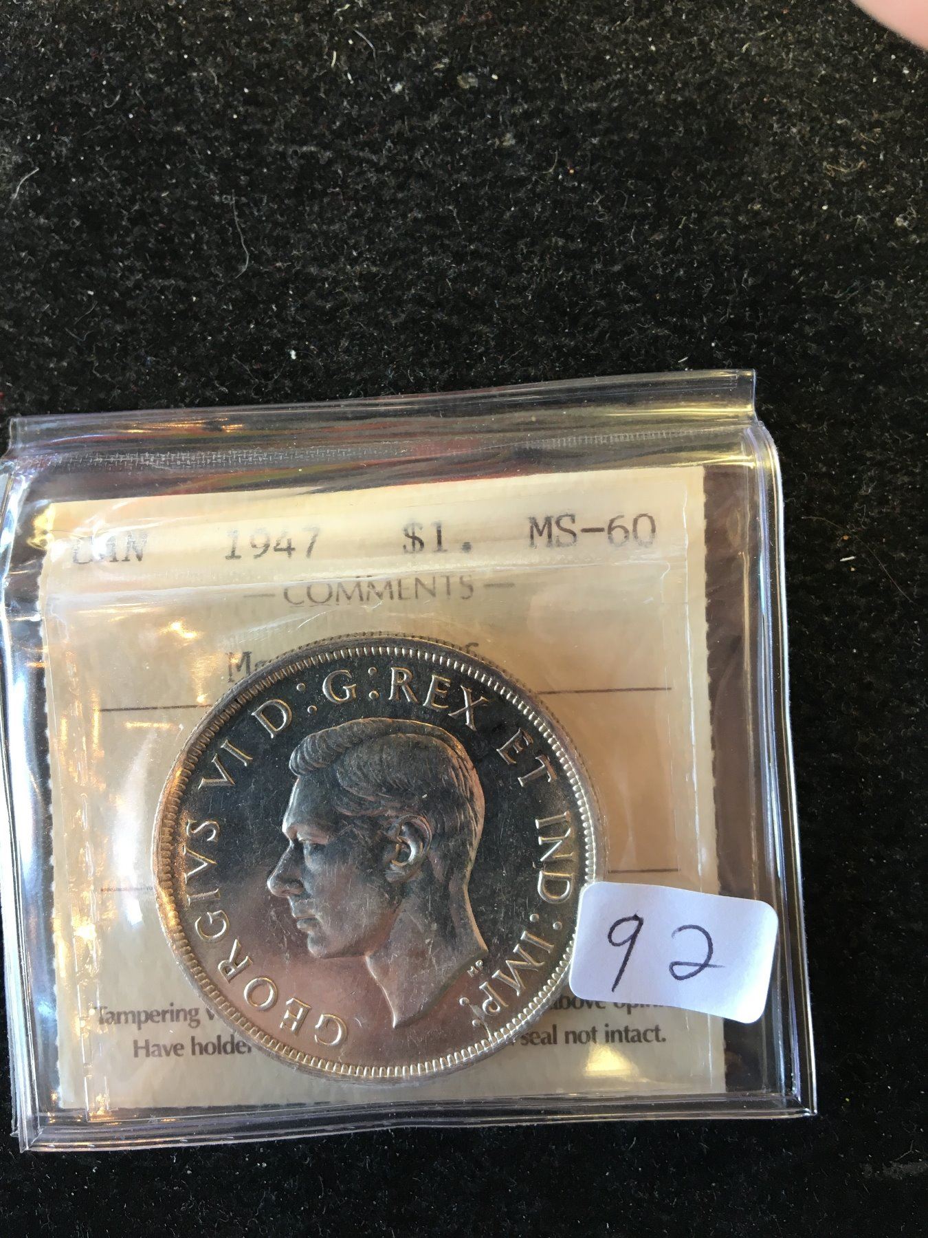 NICE KEY DATE 1947 MAPLE LEAF! ICCS GRADED MS-60..ITS NOT DESIGNATED HOWEVER IS CLEARLY A DOUBLE HP