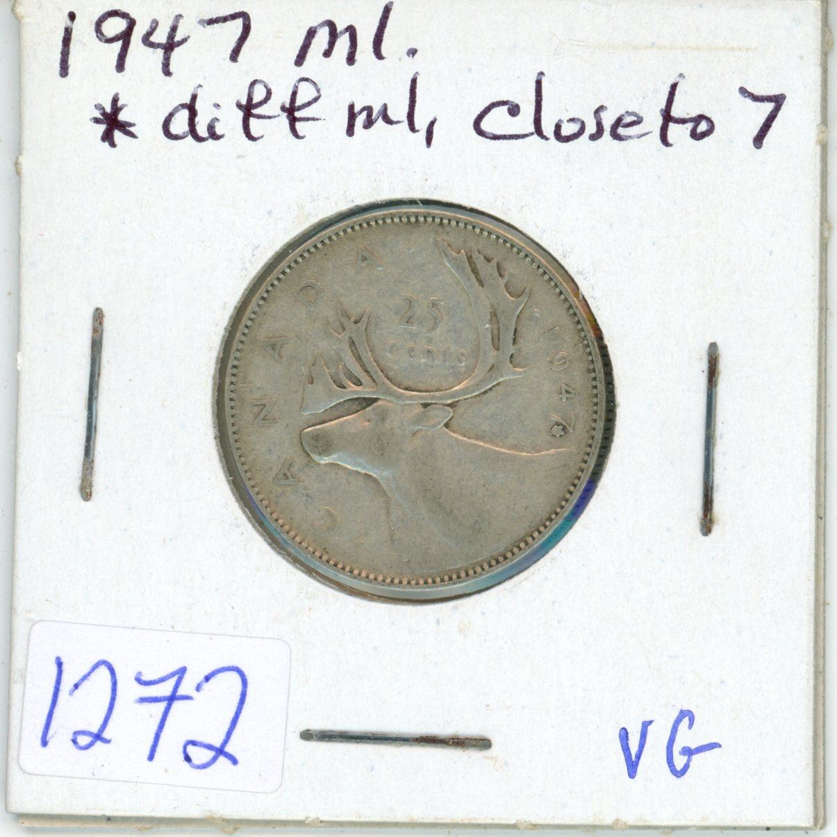 1947 ML close to 7 - Canadian silver, 25 cent coin
