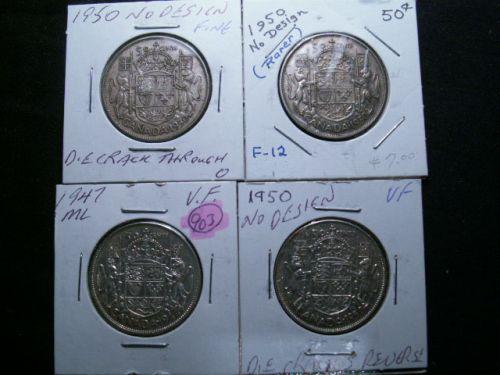 1947 MLCL, 1950 No Design x 3. Lot of 4 variety coins Fine or better.