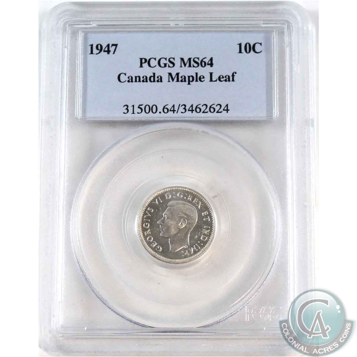 1947 Maple Leaf 10-cent PCGS Certified MS-64