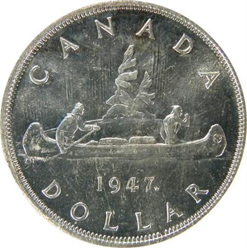 Canada Silver Dollar 1947 Maple Leaf Doubled HP PCGS MS-63. A strongly struck pale golden toned piece