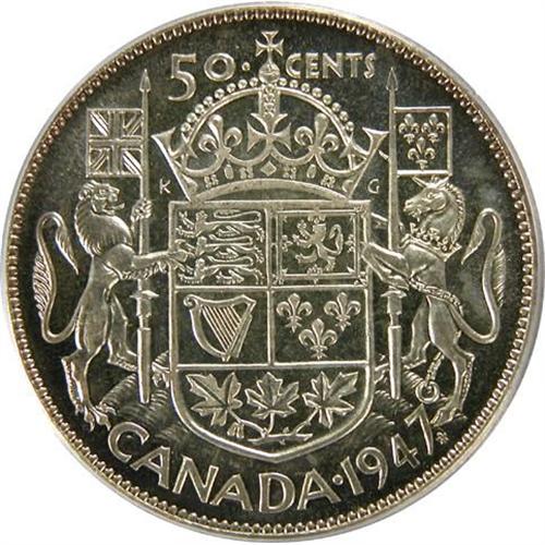 1947 Maple Leaf, Straight 7, ICCS and PCGS MS-64. Great lustre and pale golden toning. It is tied as the fifth highest graded by PCGS