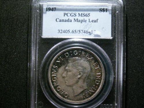 1947 Maple Leaf PCGS MS65PQ. Light russet, blue and golden tones. Very rare in this condition.