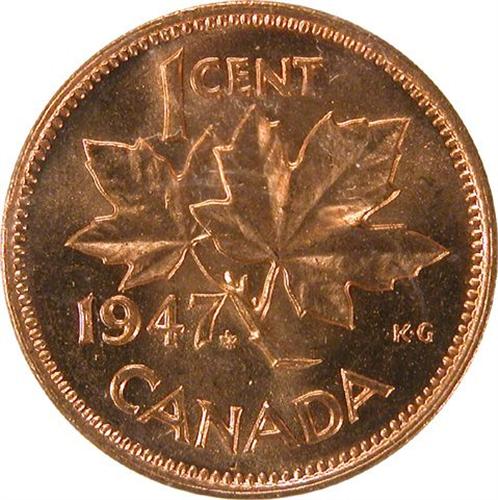 1947 Maple Leaf Pointed 7 ICCS MS-65 Red. Approaching full red