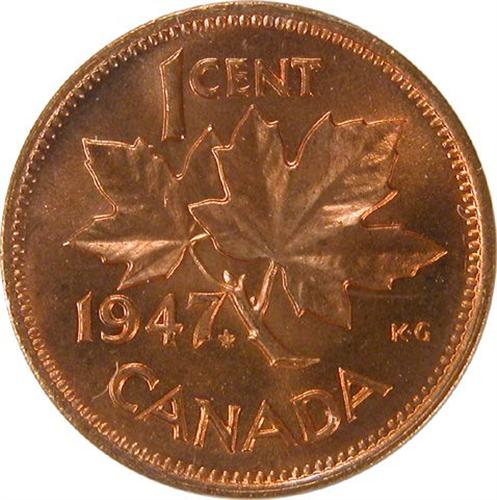 1947 Maple Leaf Pointed 7 ICCS MS-65 Red. Over 90% red