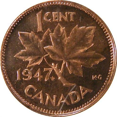 1947 Maple Leaf Pointed 7 PCGS SP-64 Red. Approaching full red